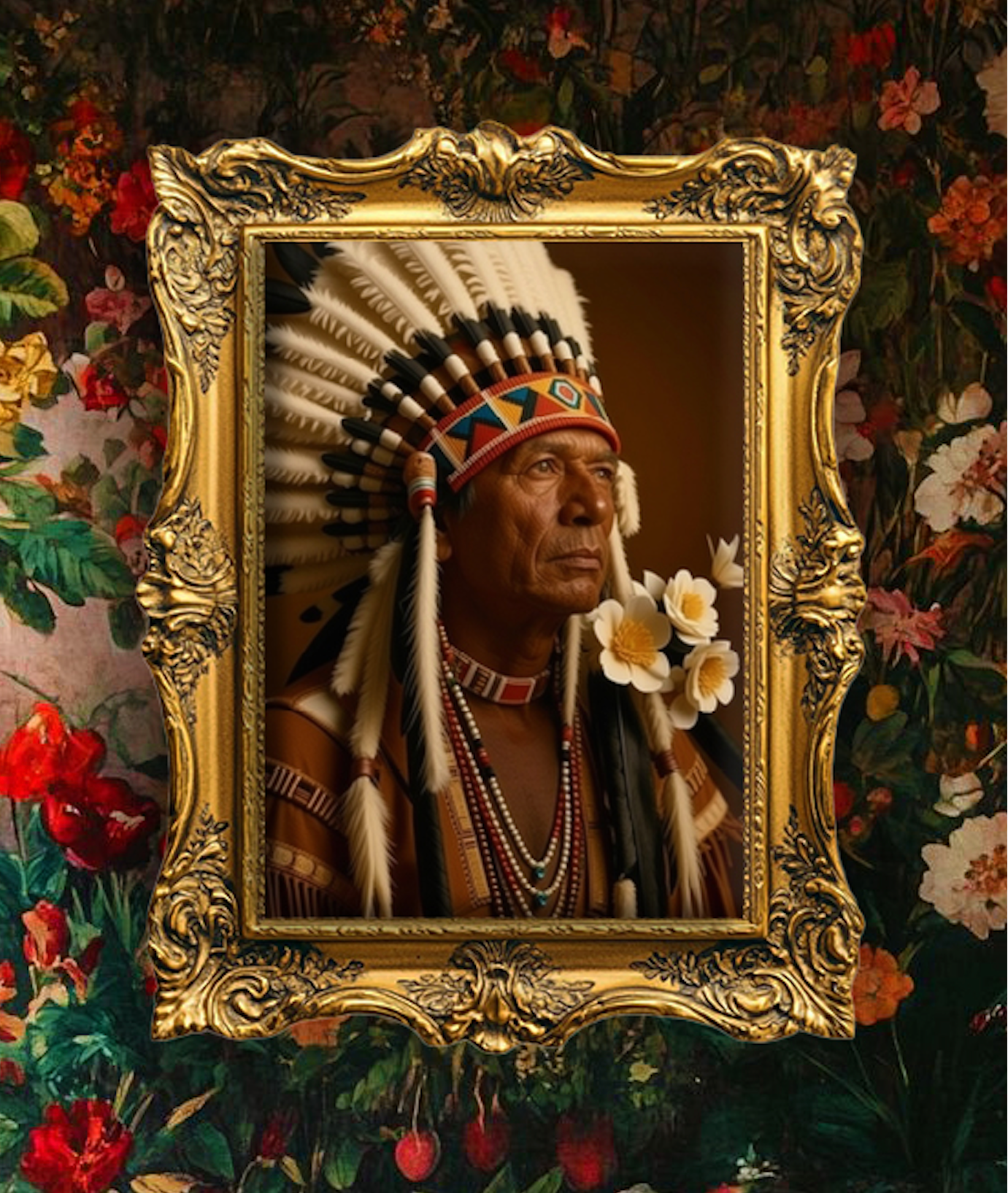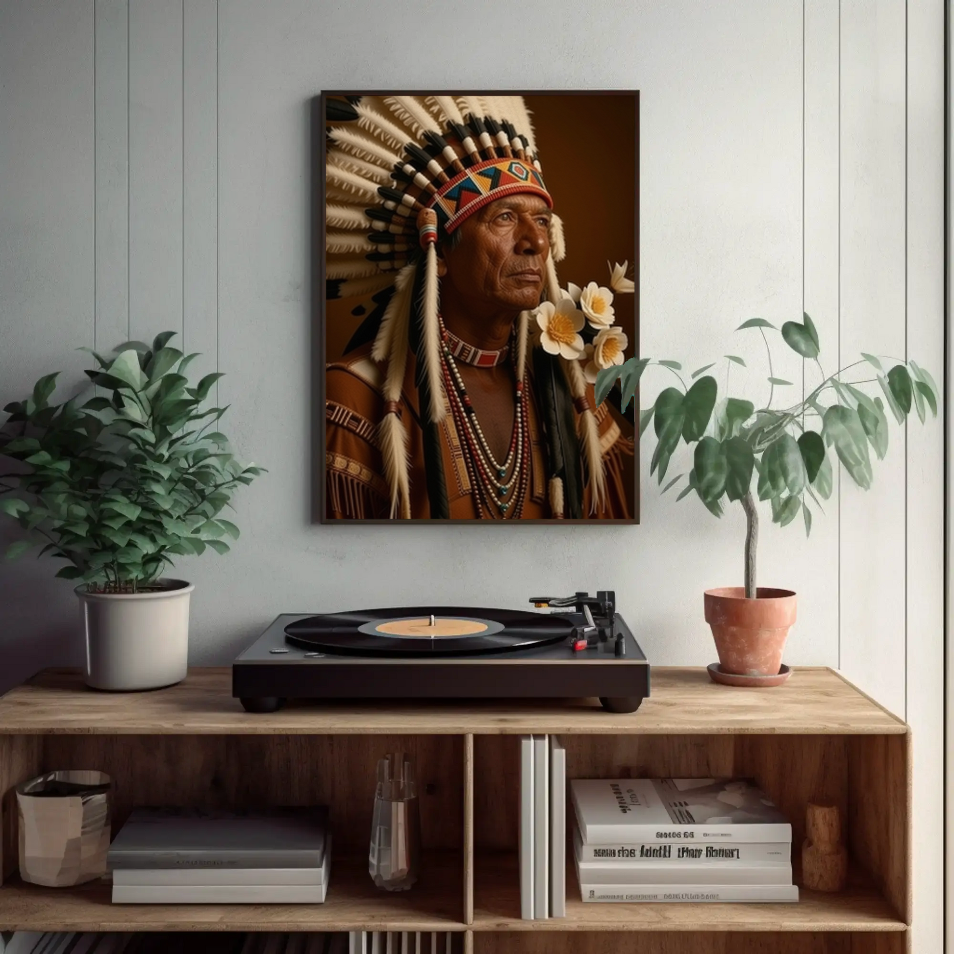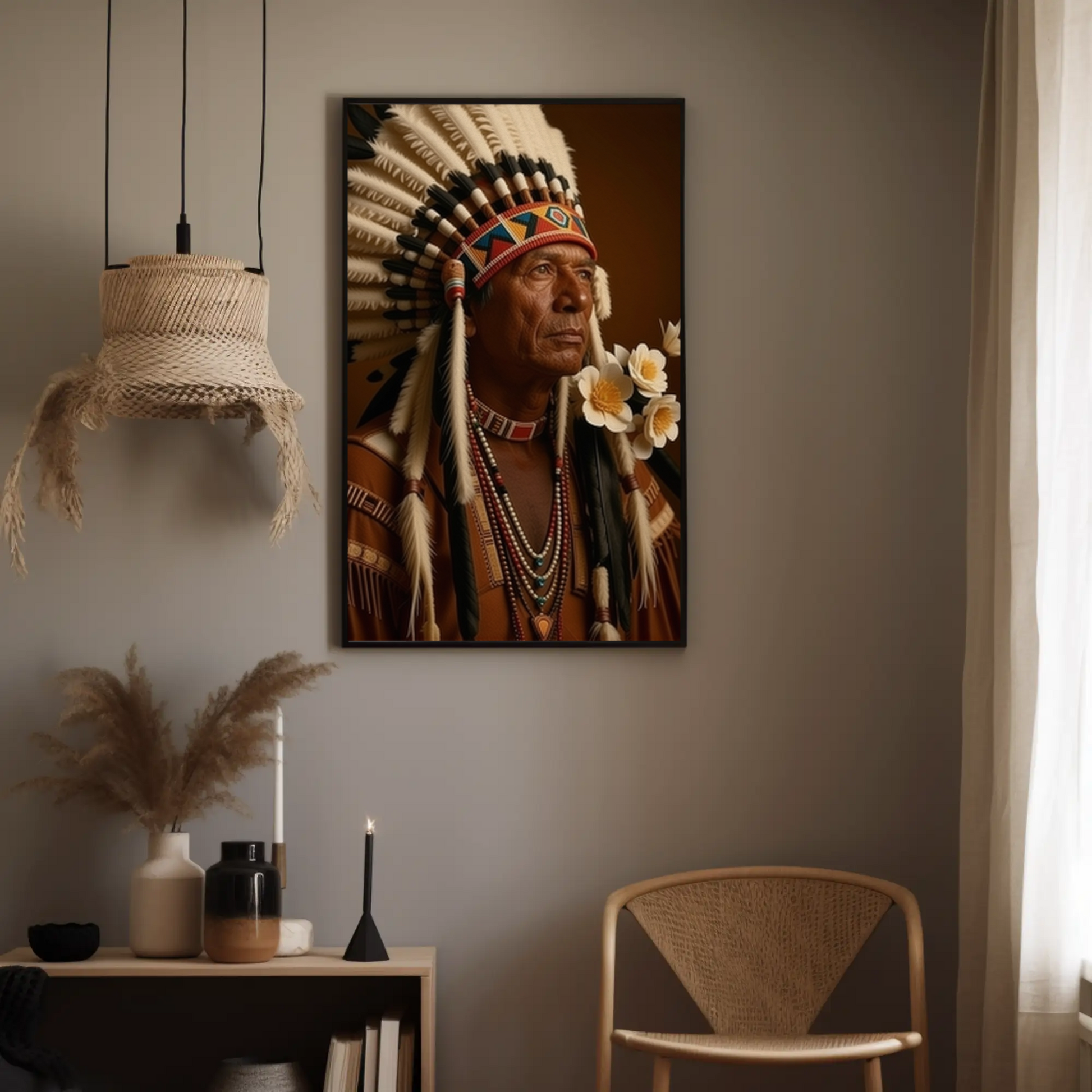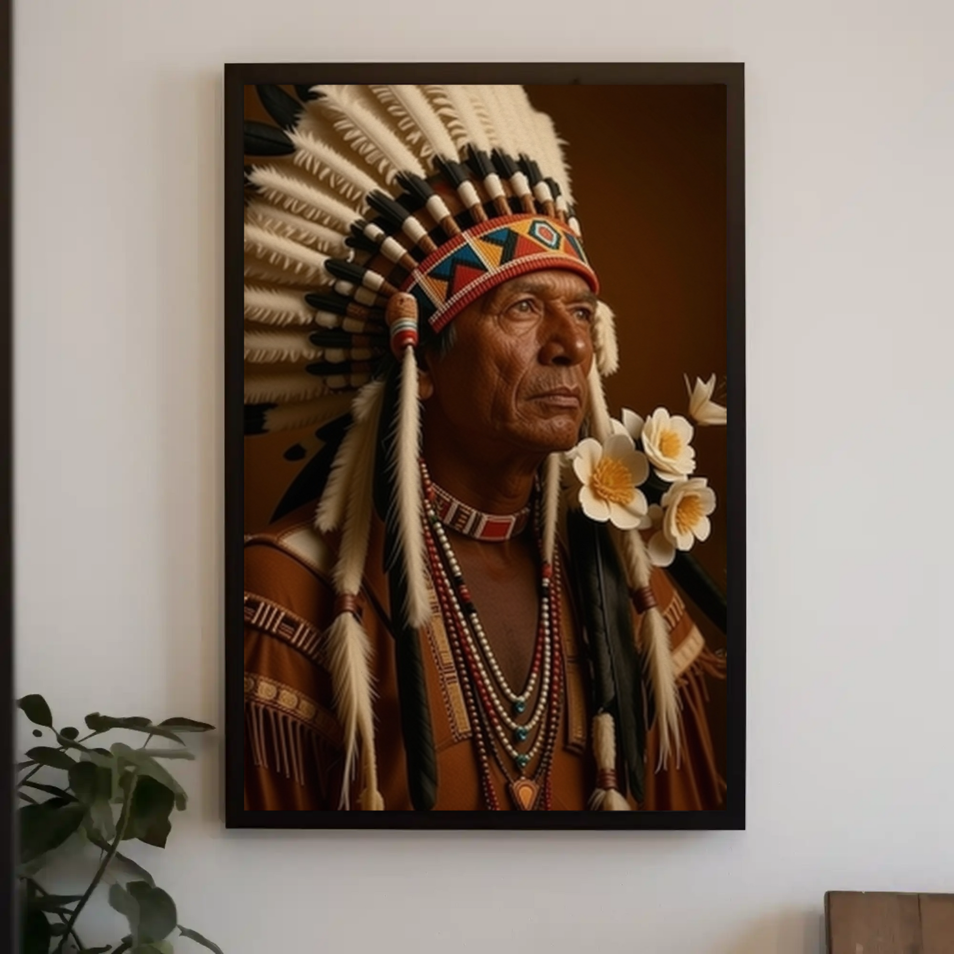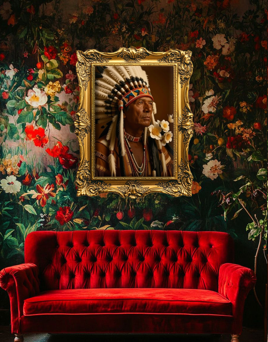 This beautiful impactful Indian Portrait will set the tone in the room from the minute it shines on your wall!