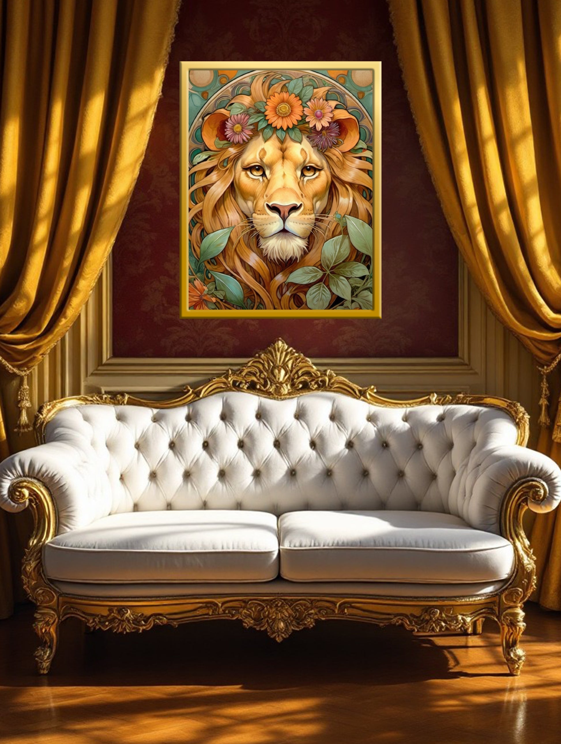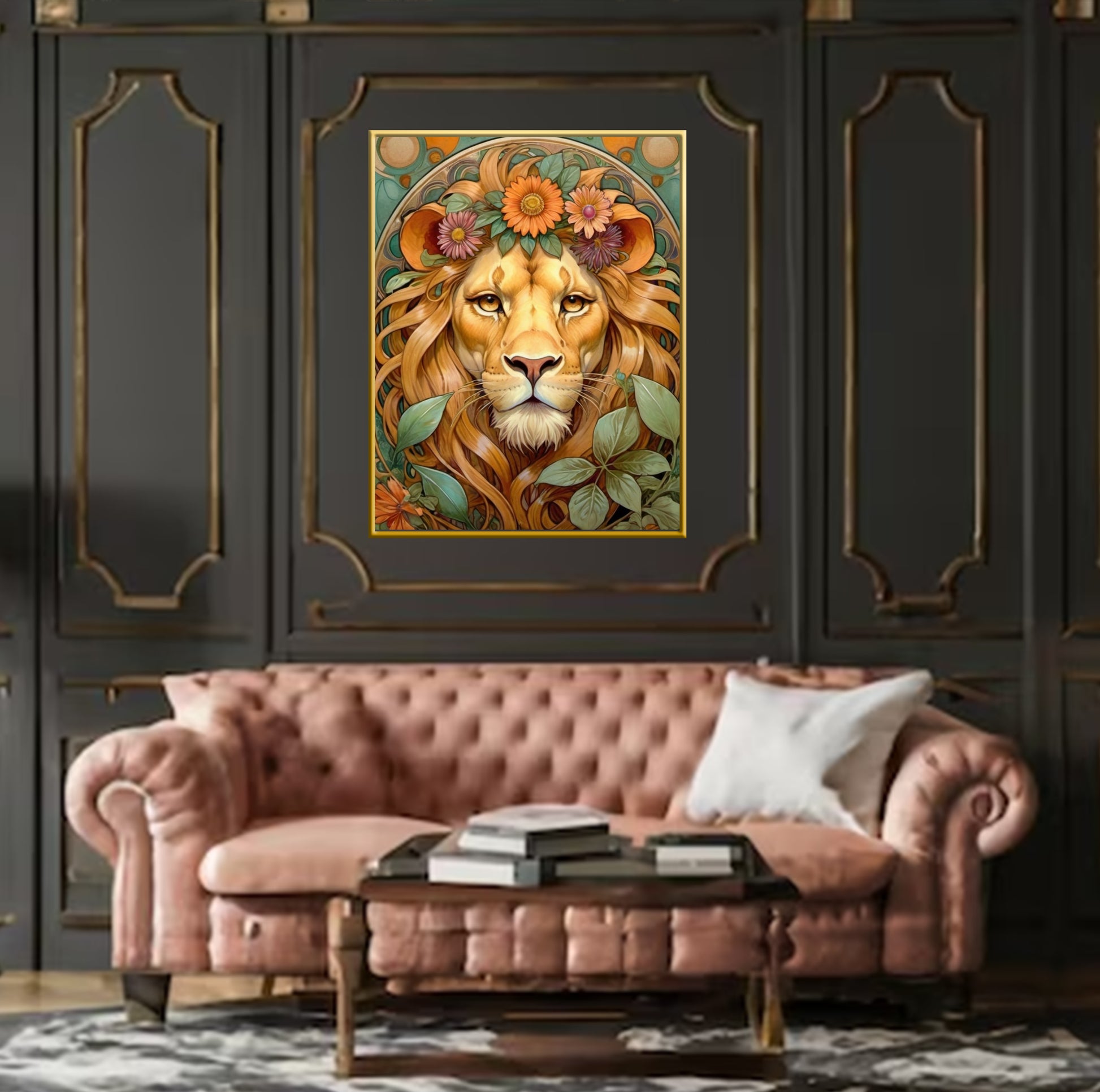 Beautiful Portrait of a Lion with Flowers in Art Nouveau Style - Digital Download