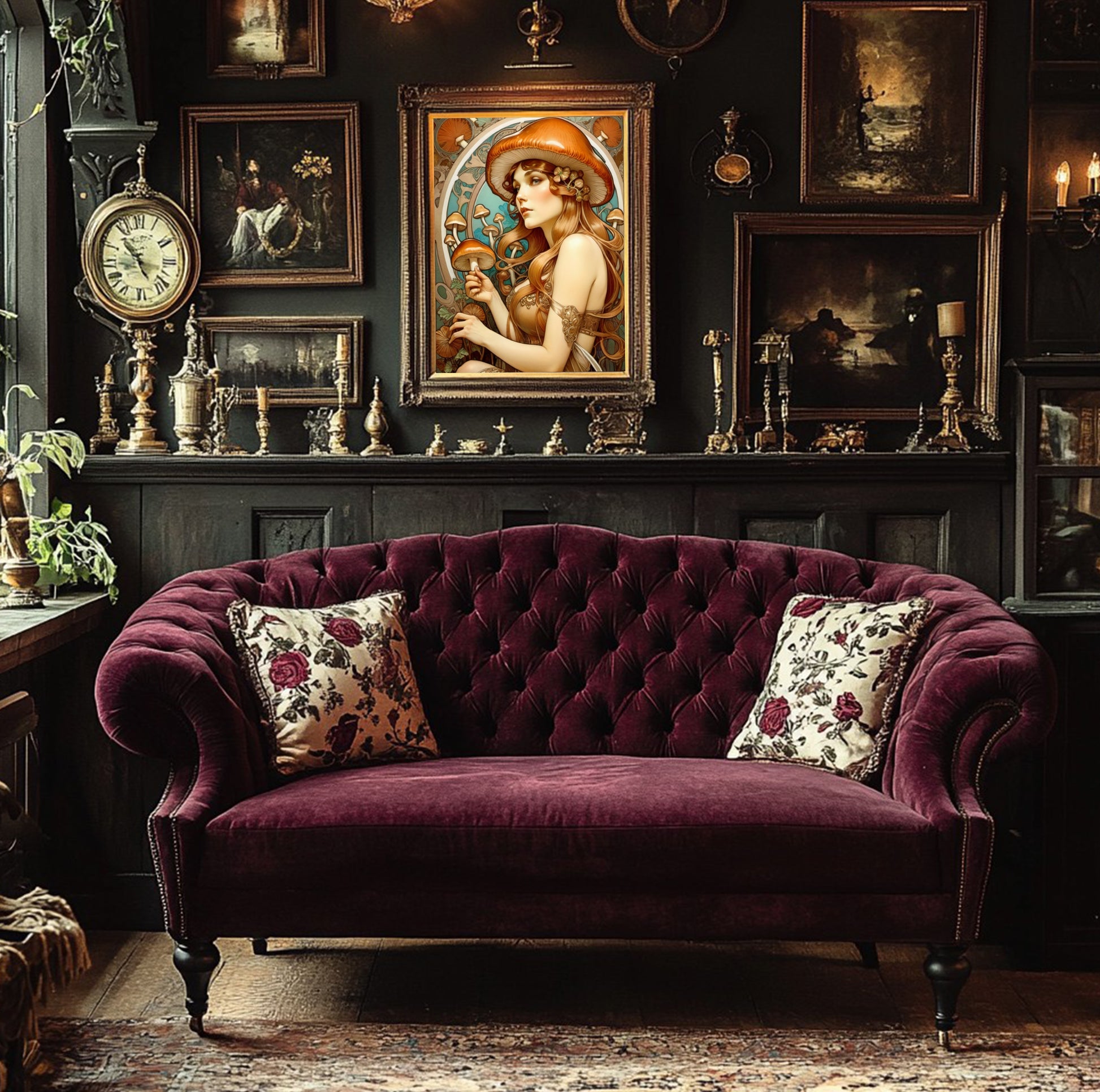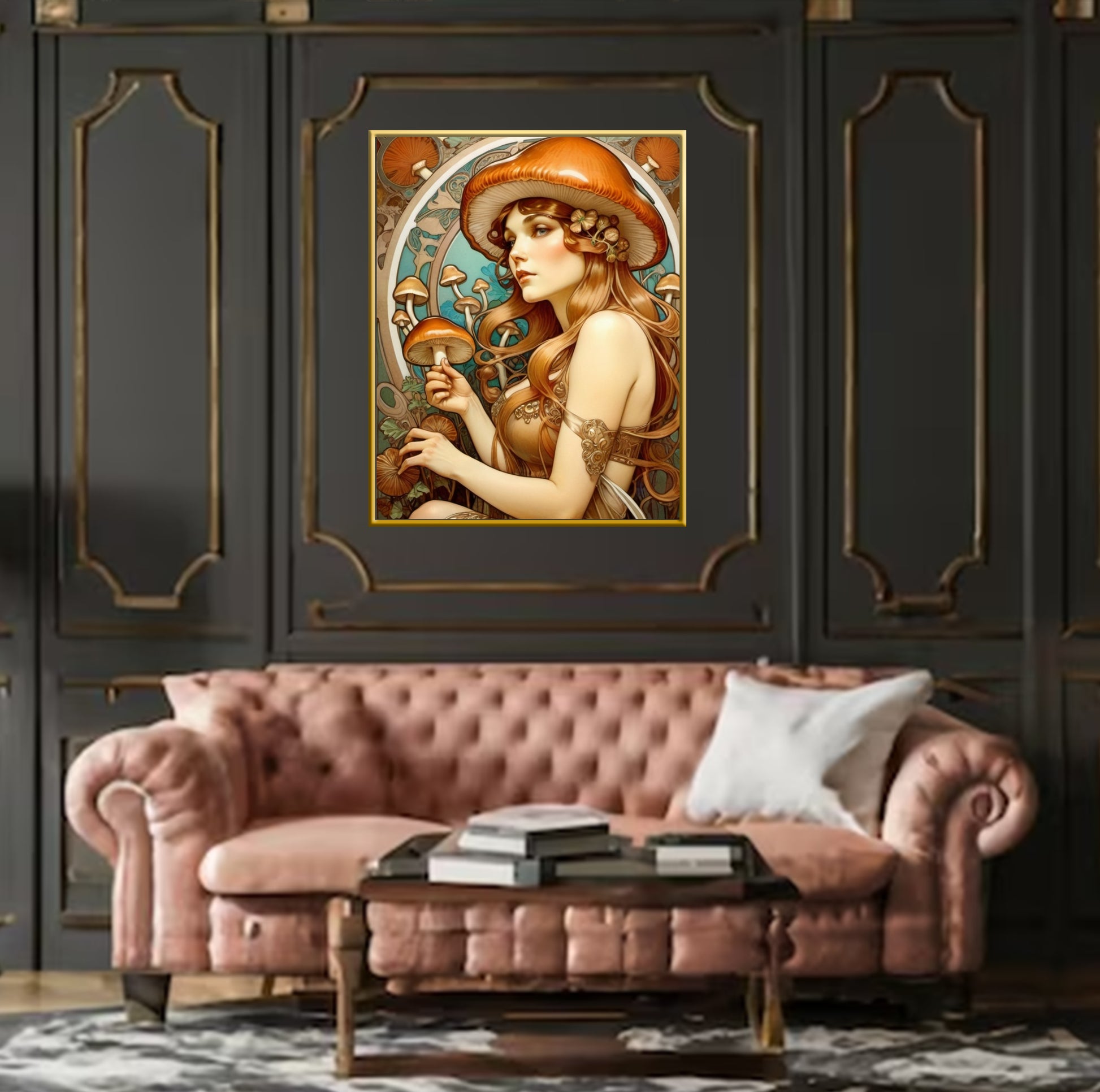 Beautiful Portrait of a Woman in Art Nouveau Style - Mushroom Theme - Digital Download