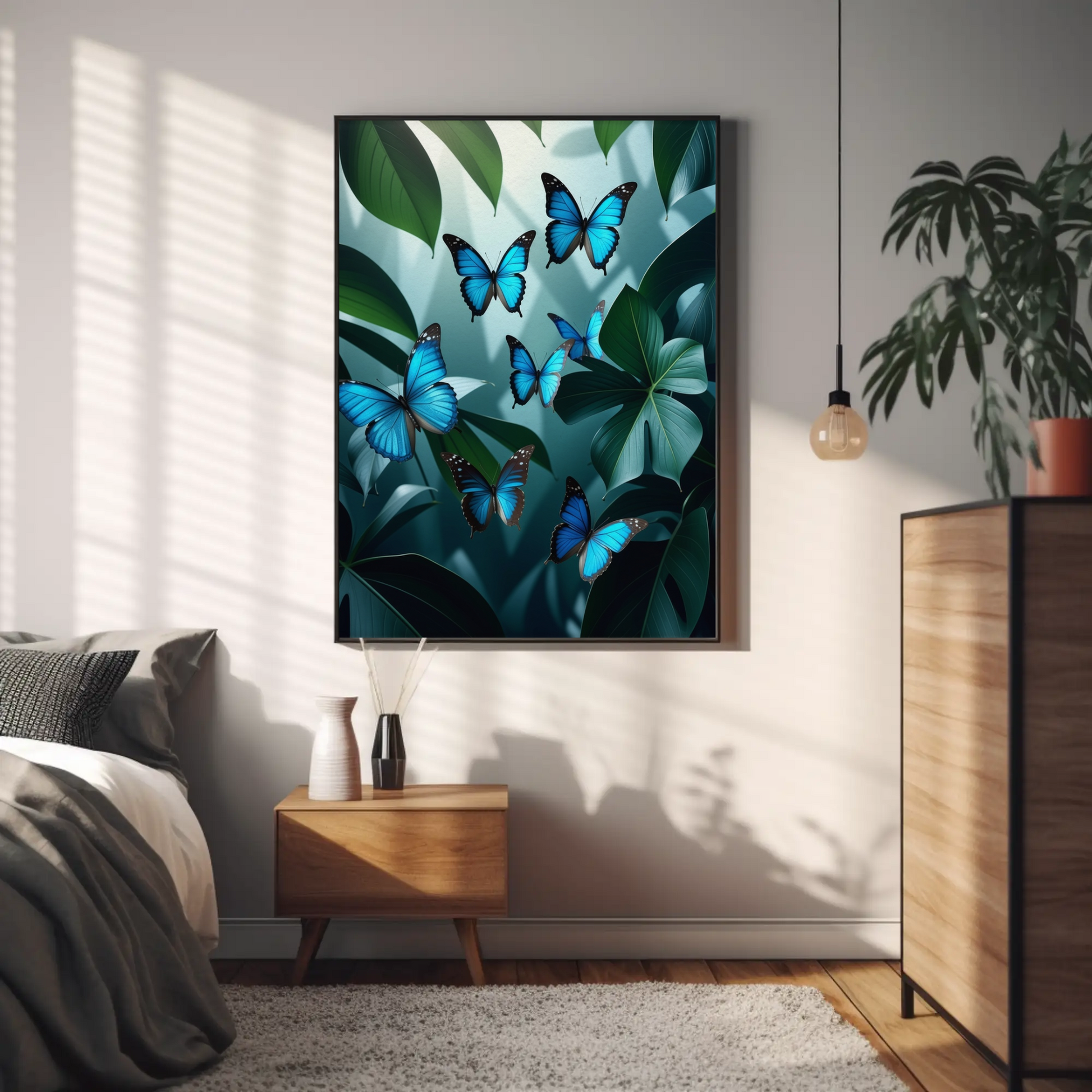 Butterflies in Monstera Tropical Foliage Art Print - Digital Download